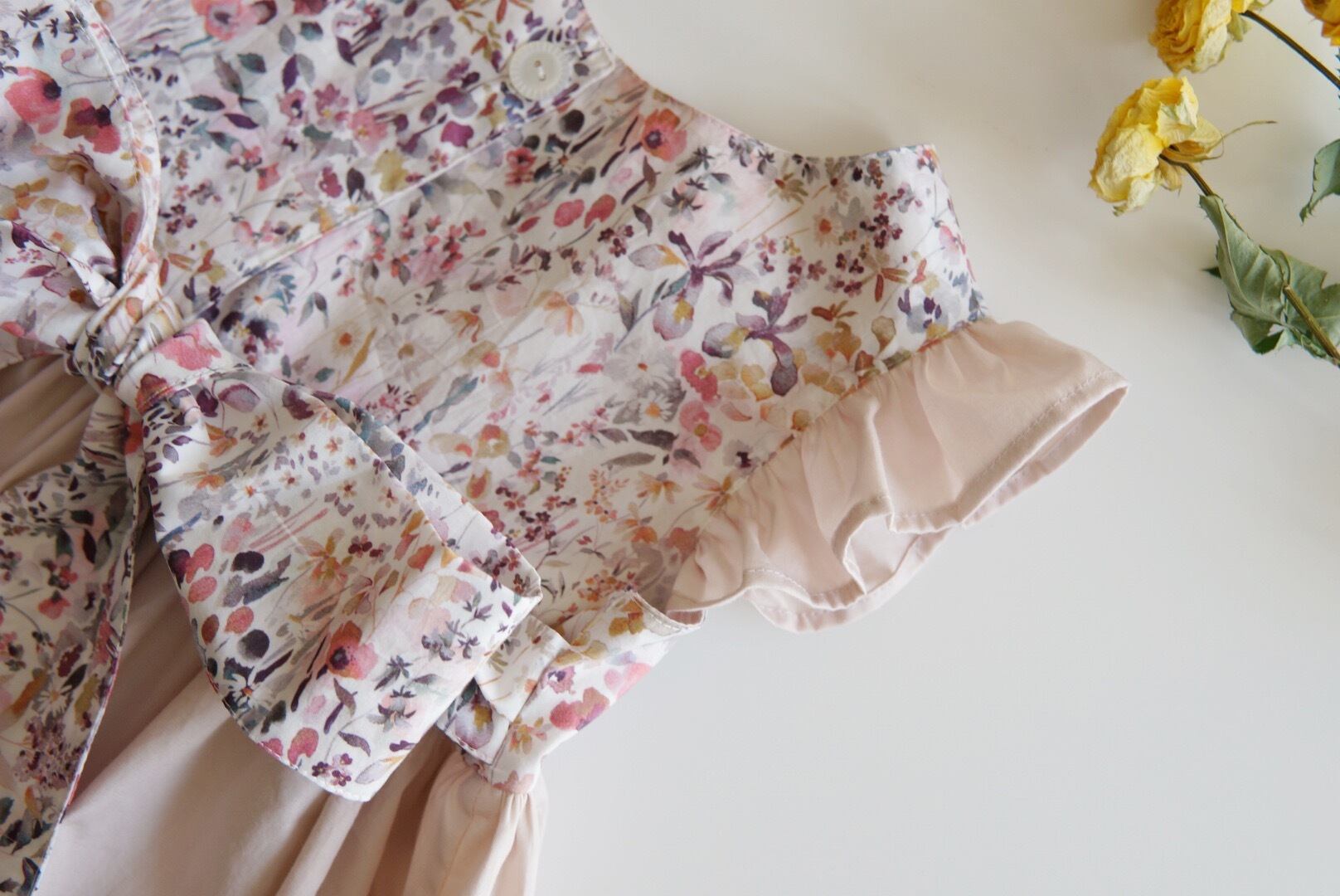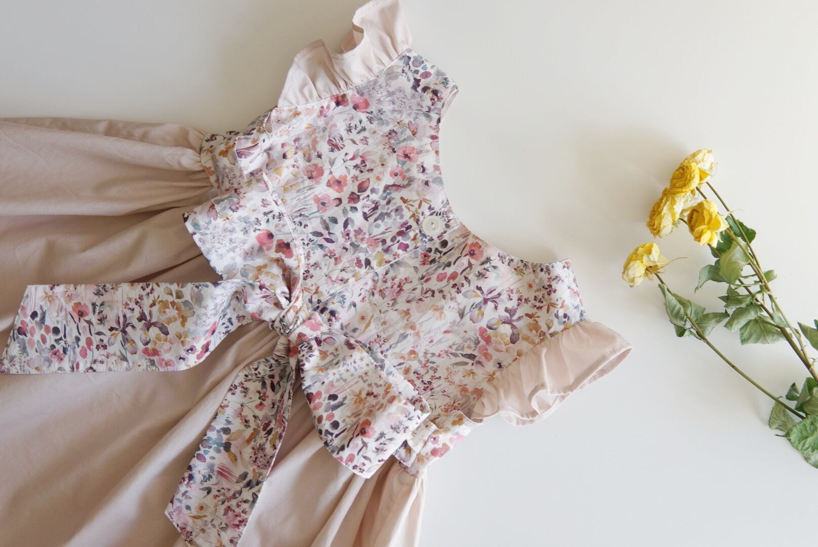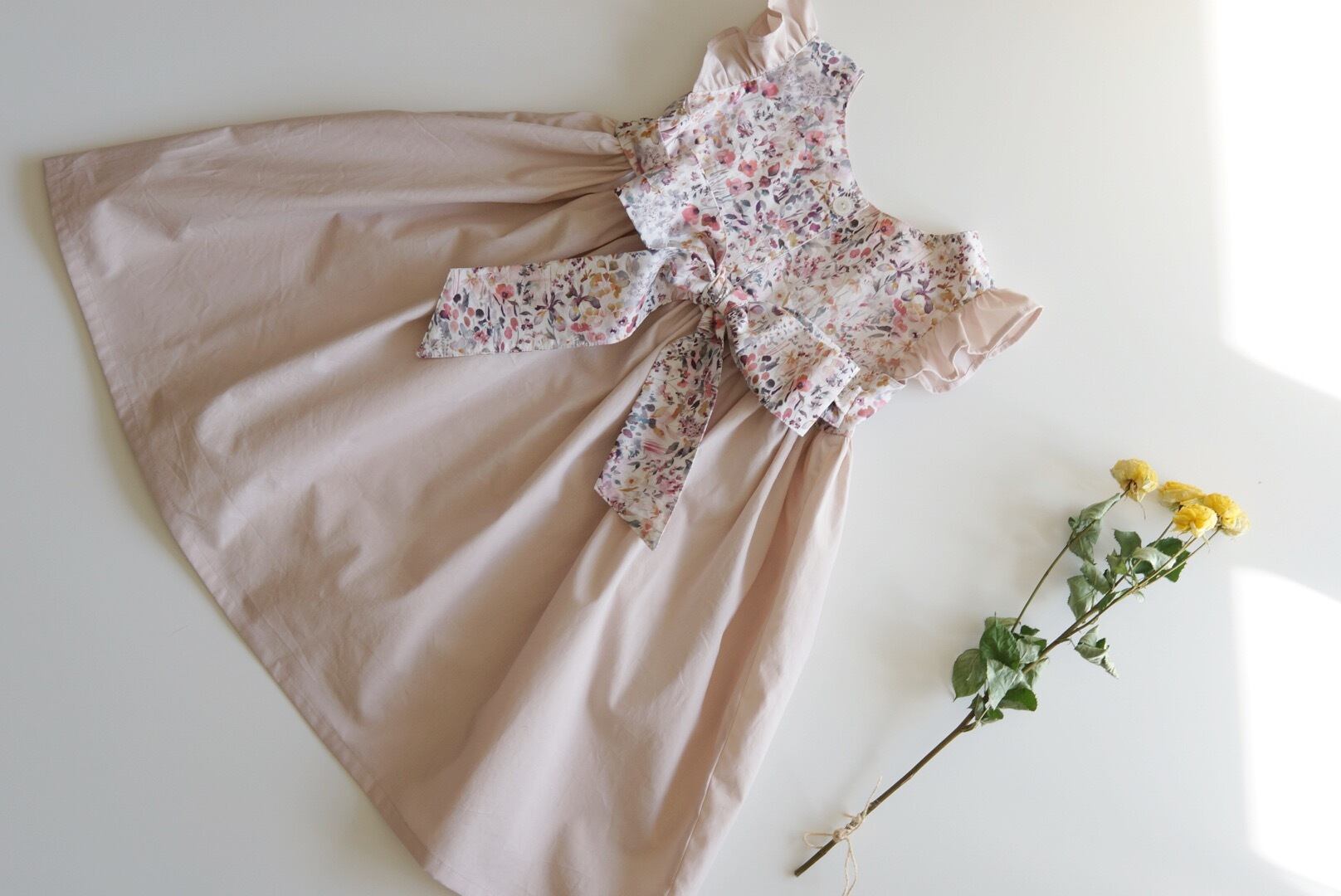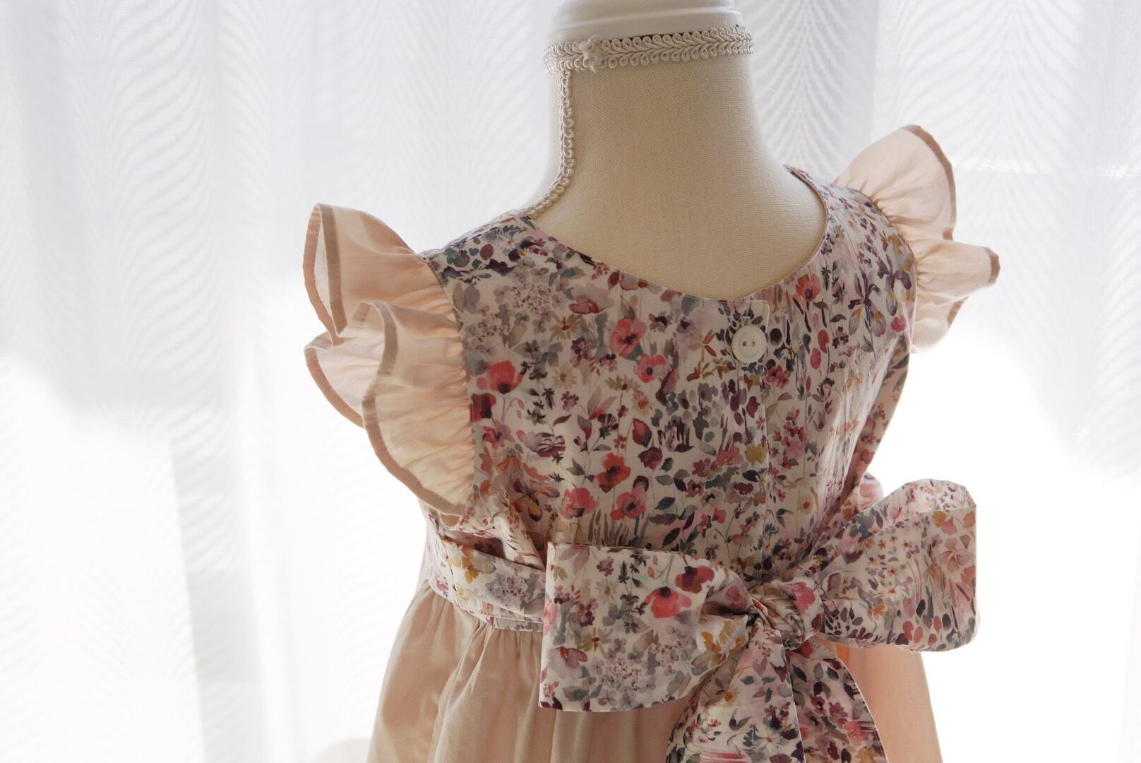 リバティFelda(フェルダ)と海のブロード(グレイッシュピンク)でフリルワンピースを作成します。